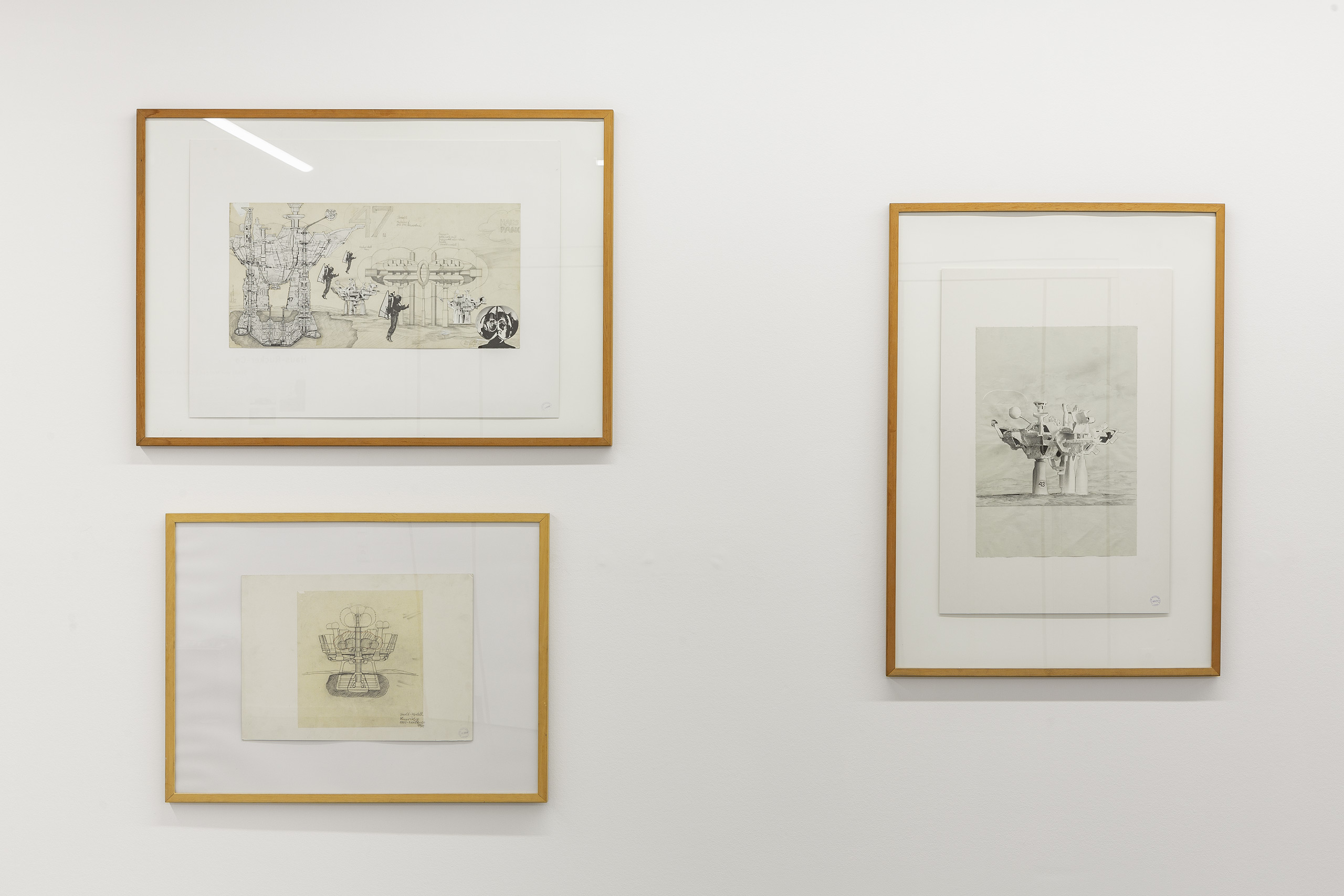 The drawings, collages, models, and photographic and film documents shown in the exhibition cast a spotlight on the city of tomorrow by showing both the mind-expanding objects and pneumatic architectures, and the reserves in the form of domes or spheres. The latter critically question our relationship to natural and urban spaces, in which artificial cultural and natural landscapes are brought together and intertwined. In times of global climate catastrophe and the search for survival strategies, Haus-Rucker-Co’s visionary considerations with regard to the city of tomorrow have lost none of their topicality and have thus remained a decisive source of inspiration for a multitude of current artistic positions worldwide, as can be seen for example in the works of Olafur Eliasson, Tomás Saraceno or the group Raumlabor Berlin.