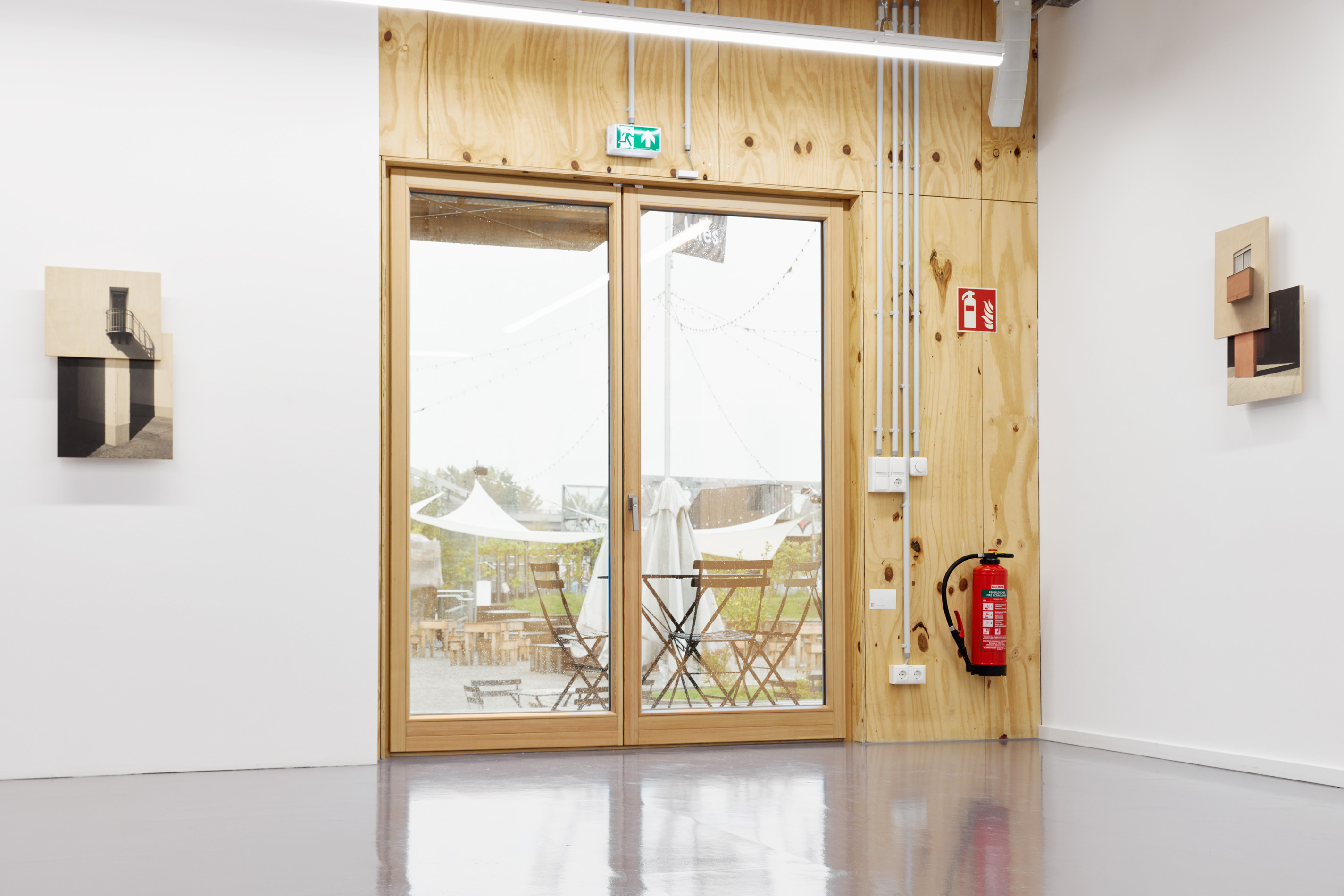 At the site of the future "Urban Center Am Gleisdreieck", a place where various actors meet, building tolerance now has an effect on the inside and the outside of the current and planned architecture: as the title of Laure Catugier's current solo exhibition at "B-Part Exhibition", "building tolerance" is clearly communicated to the public on the outside - on the exhibition banner in front of the "B-Part" - while on the inside, for this very public, the boundaries of conventional perception are artistically deviated from: