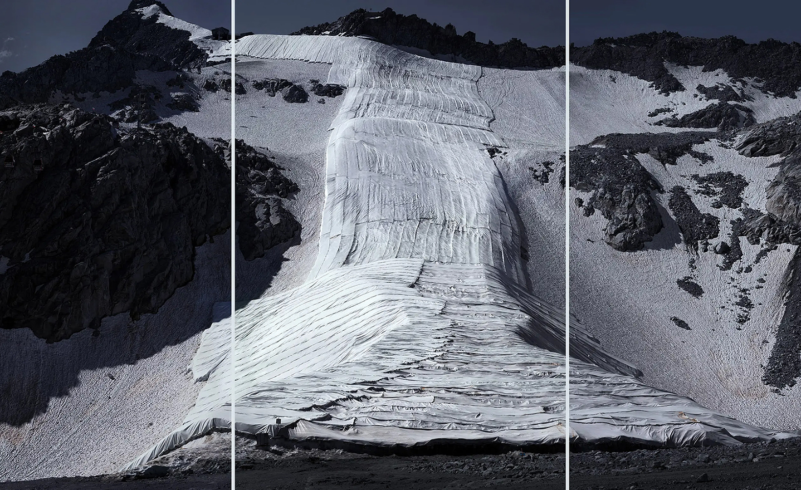 | The exhibition Strained Terrain at B-Part Exhibition is part of the EMOP Berlin (European Month of Photography) and focuses on the artistic exploration of nature and its profound transformation through human influence. The exhibition presents works by five artists who visualize and rethink the consequences of the Anthropocene for landscape and climate in a variety of mostly purely photographic ways. The question is vehemently posed as to (up to) what degree the world exists - and for whom. Berlin-based artist Charlotte Bastian creates new landscapes from photographs of different places and times - collages and three-dimensional spatial images. Without wanting to be documentary, the artist uses two or three photographic scenes and motifs, which actually depict very different places around the world that she has photographed herself - sometimes with drones - to create a visual non-simultaneity and non-locatability aimed at cognitive dissonance. The images evoke uncanny atmospheres in which residual nature, supposed idyll, wasteland and damaged architecture collide in equal measure. Even as prints in 2-D view, then collaged in analog form, Bastian's photo collages have a powerful effect. When Bastian makes these works visible through a stereoscope - an apparatus for reproducing static images that creates a spatial impression of depth that does not correspond to the physical facts - the method of collage achieves an even more threatening immediacy, the images become almost immersive through the apparatus. Bastian also achieves illusions of immediate depth through her work in lenticular printing technique, which is also shown in the exhibition: a landscape submerged in water with architectural remains that simultaneously appear barely habitable above and below the water level. The artist Rosalind Lowry, who lives in Northern Ireland, is interested in the commercialization of land, the cultural heritage and associated folklore of a landscape that is now disappearing.She is interested in ecological destruction and the resulting social conflicts in Ireland, such as the history and consequences of the Common Land Laws.In her works, situated between land art and landscape photography, Lowry creates a new kind of imaginary environment to show the disappearance of species and landscapes in Ireland as well as the effects of the commercialization of the country.Specific to place and time, the artist uses the power of (documented) intervention to respond to these contemporary issues both poetically and poignantly. Thomas Wrede, who lives in Münster and teaches in Essen, has been working in the Alps for several years on the photo project “White was the snow”.The Rhone and Presena glaciers in Switzerland form the starting point for his photographic works shown in Strained Terrain.He is concerned with the question of how the climate crisis is reflected in the high mountains - in the covered glacier as well as in the discoloration of the melting ice and snow. Wrede documents large-scale, found “stagings” in which partly weathered layers of cloths, foils and fleece sheets are now used to at least slow down the melting process - on behalf of the tourism industry. At the same time, he focuses on the different color nuances of the now contaminated snow and ice. In this way, the traces of the climate crisis can be seen in the color and materiality. At the same time, man's (helpless) interventions make the vulnerability of nature all the more visible. This tension between beauty and transience characterizes Wrede's work and finds expression in his photographs. Nature transformed by industry is a predominant theme in the work of Edward Burtynsky. A few years ago, the Canadian photographer began to develop a contemporary view of the great ages of mankind: the ages of stone, minerals, oil, transportation and silicon.In order to make the associated concepts visible, Burtynsky looked for motifs that are as detailed and true to scale as they are open in their meaning, such as recycling yards, spoil heaps, quarries and refineries.It is places like these that elude our daily experience, but in whose creation and appearance we play no small part through our consumer behavior.This also applies to the places depicted in the two photographs selected for Strained Terrain: a dry farming landscape in Spain (from the “Water” cycle of works) and an iron mine in South Africa (from the “African Studies” cycle of works). According to Burtynsky, his paintings are “intended as metaphors for the dilemma of our modern existence; they seek a dialog between attraction and repulsion, seduction and fear. We are driven by the desire for a good life, and yet we know - consciously or unconsciously - that the world suffers from our success. Our dependence on nature, which provides us with the materials for our consumption, and our concern for the well-being of our planet put us in an uncomfortable contradiction.”In this sense, Burtynsky's pictures can be read as a reflection of our times, and not only for him. Berlin-based artist Betty Böhm's projects focus on the impact of the human species on our planet (and beyond). The human urge to expand, the associated ongoing extractivism and mostly violent appropriation leave direct and indirect traces: wounded landscapes, altered places and destroyed structures. The artist is particularly interested in the inscriptions of past events that reverberate in these places and shape our collective consciousness. Böhm traces such landscapes in order to portray them in their ambivalence. Using a transdisciplinary approach that combines photography, film/video, installation, sound and performance, Böhm interweaves documentary and research-based elements with subjective and poetic-associative levels. The result is immersive, sensual interior landscapes that immerse the viewer in a multi-layered space of experience. This is also the case in her installation “Grove (resurrection)” sh